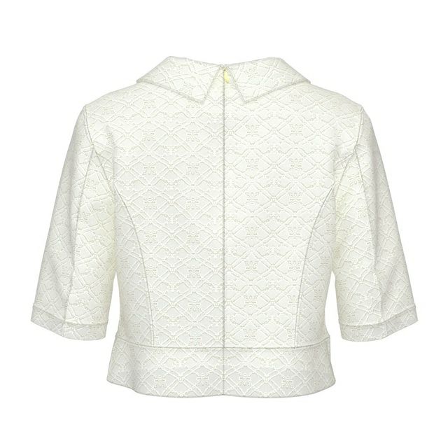 刺繍を施したような繊細な表面感が魅力的なPrincessline Blouse。短めの丈とウエストの切り替えが着るだけで女性らしい雰囲気を引き立てます。上品さやフェミニンさを演出しつつ暑い日でもさらりと着ていただける、RUMARRYが追求している着心地にもこだわった一着となっております。こちらの商品は同生地70501242とセットアップとして着ていただけます。